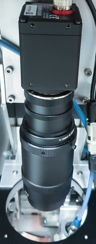 Das Vision-System misst vollautomatisch und vollkommen berührungslos den Gewindedurchmesser und ermittelt die XY-Position des Gewindemittelpunkts mit hochauflösender Kamera und LED-Ringbeleuchtung.