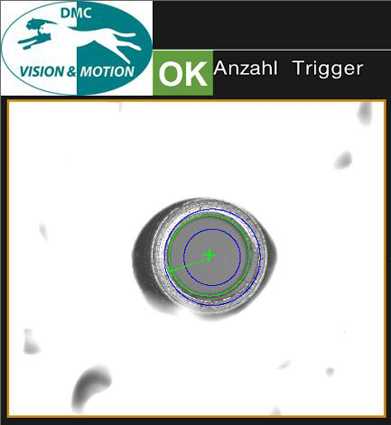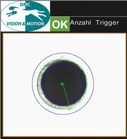 | Steuerung: | Triggersignal und Programmwechsel für den Visioncontroller über Anlagen-SPS, Bewertungsübertragung über E/As, Messdatenübertragung per Ethernet, Speichern der NG-Daten und Bilddateien auf USB-Speicher |